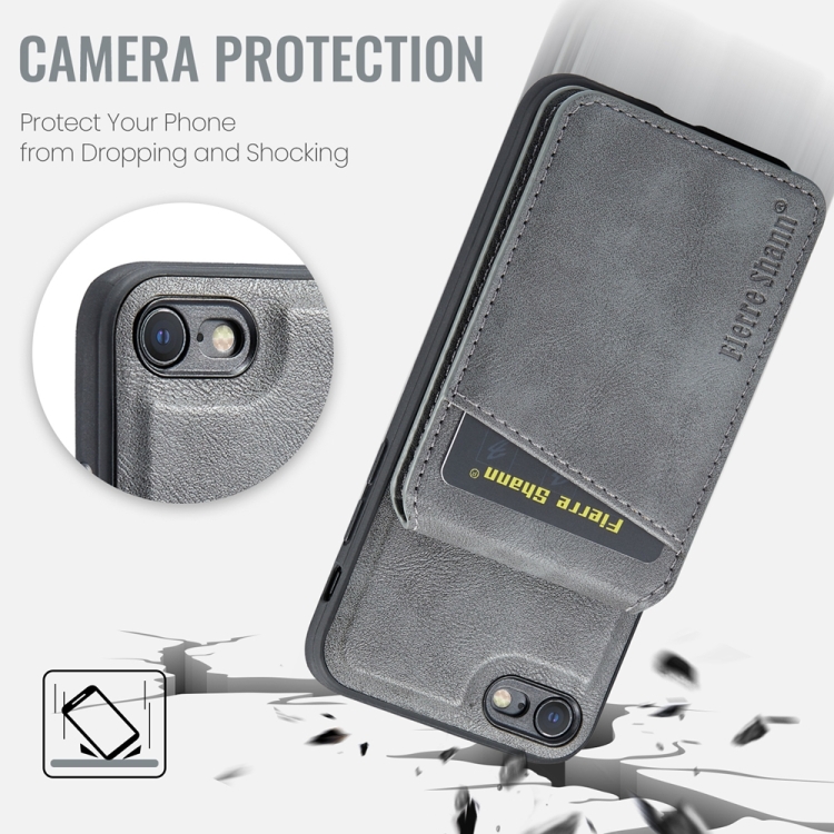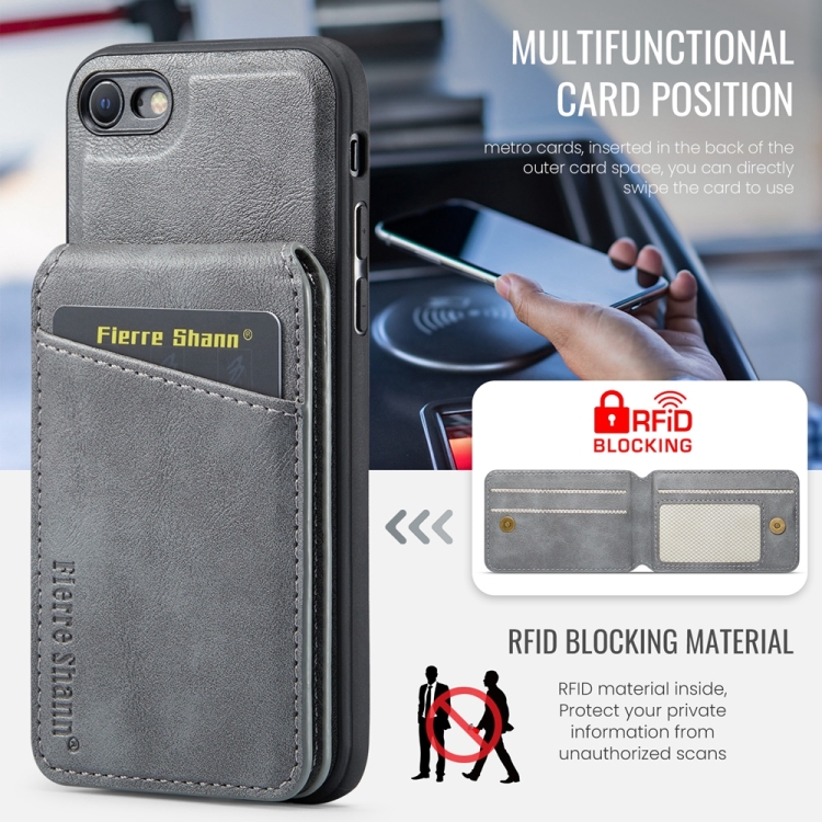 For iPhone SE 2022/SE 2020/8/7 Fierre Shann Oil Wax Cowhide Leather Magnetic Card Holder Phone Case (Gray)