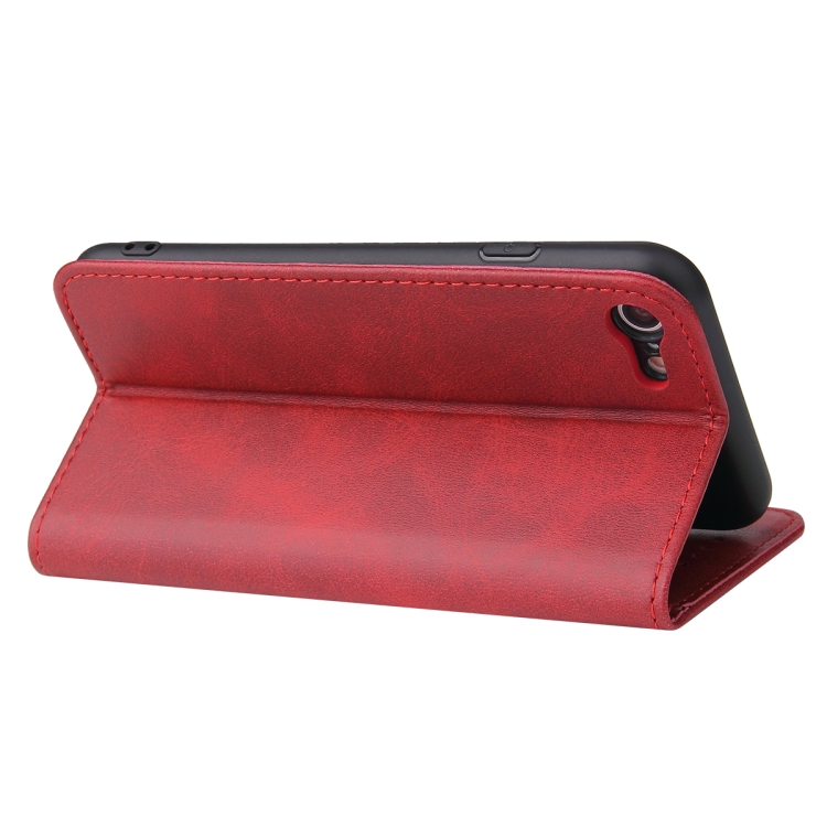 Funda de Cuero para iPhone SE 2022 / SE 2020 / 8 / 7 con Tapa Horizontal Magnética Soporte Ranuras y Billetera (Rojo)