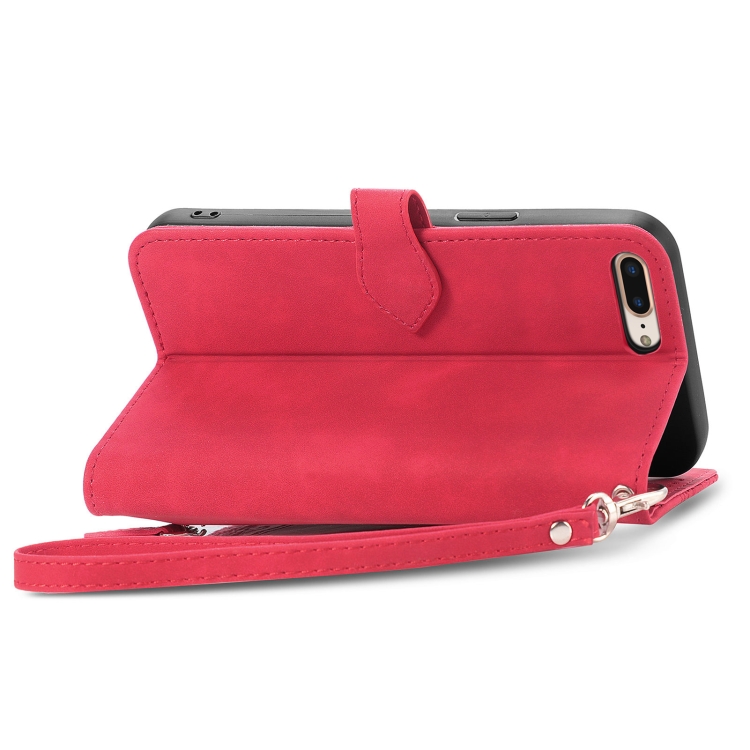 Funda de Teléfono Cuero iPhone SE 2022 SE 2020 8 7 a Prueba de Golpes Flores en Relieve (Rojo)