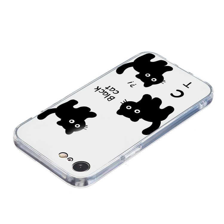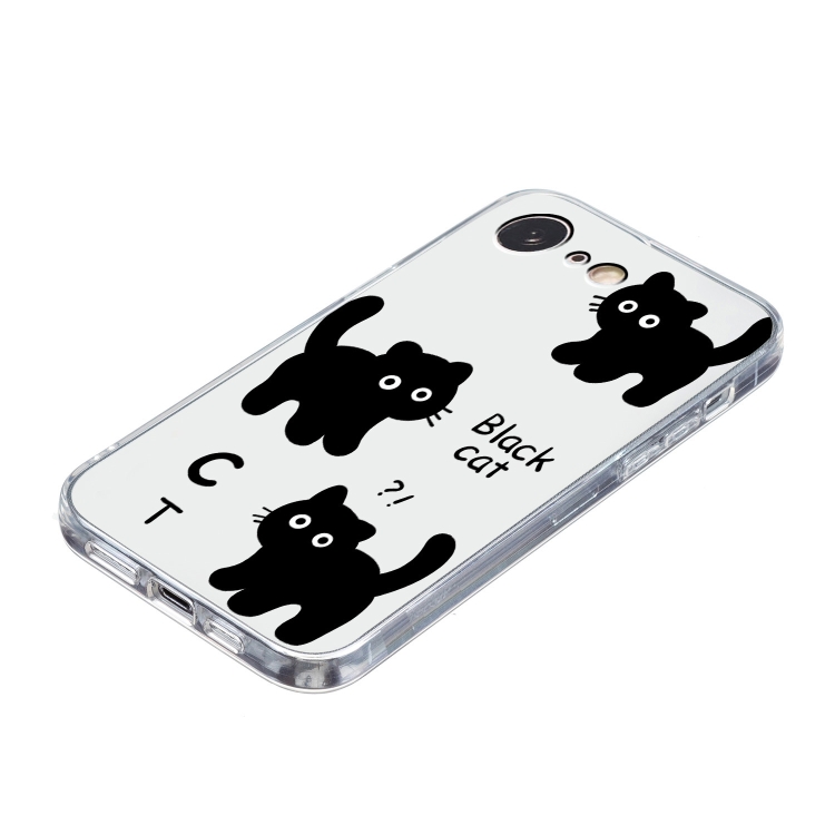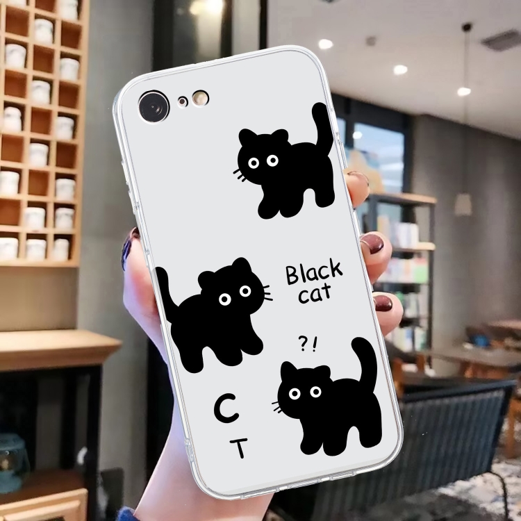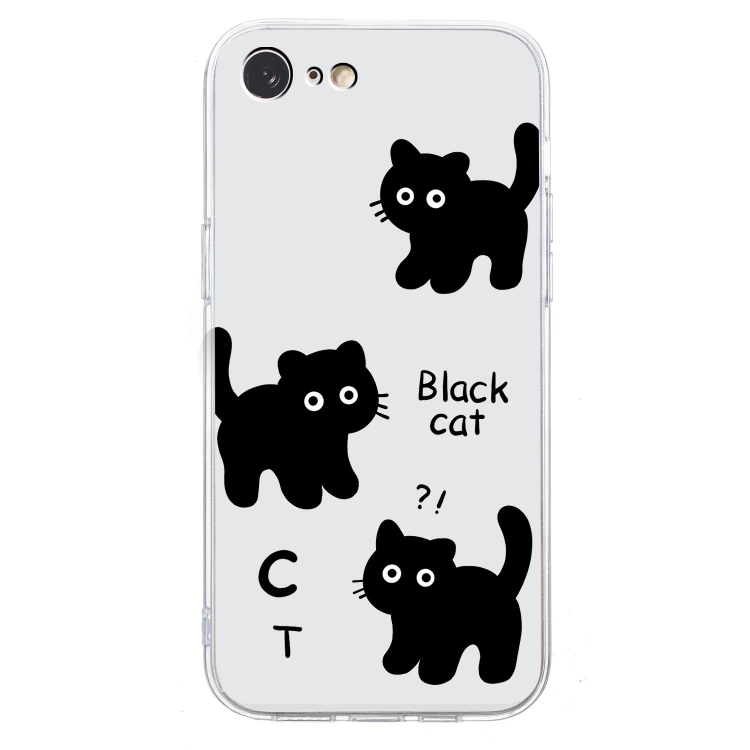 Funda de Teléfono TPU para iPhone SE 2022/SE 2020/8/7 con Patrón de Dibujo de Colores (Gato Negro)