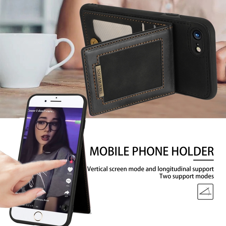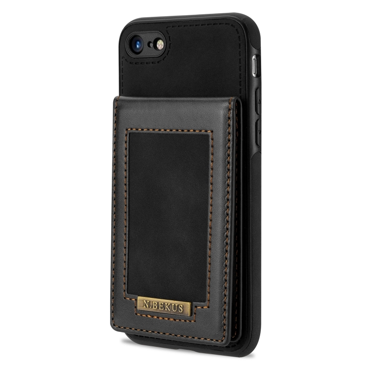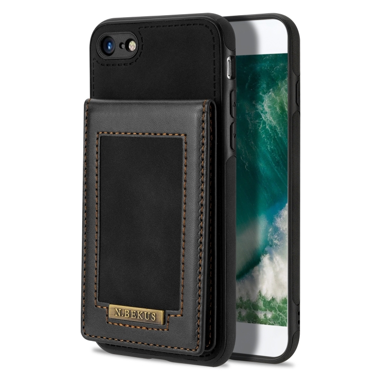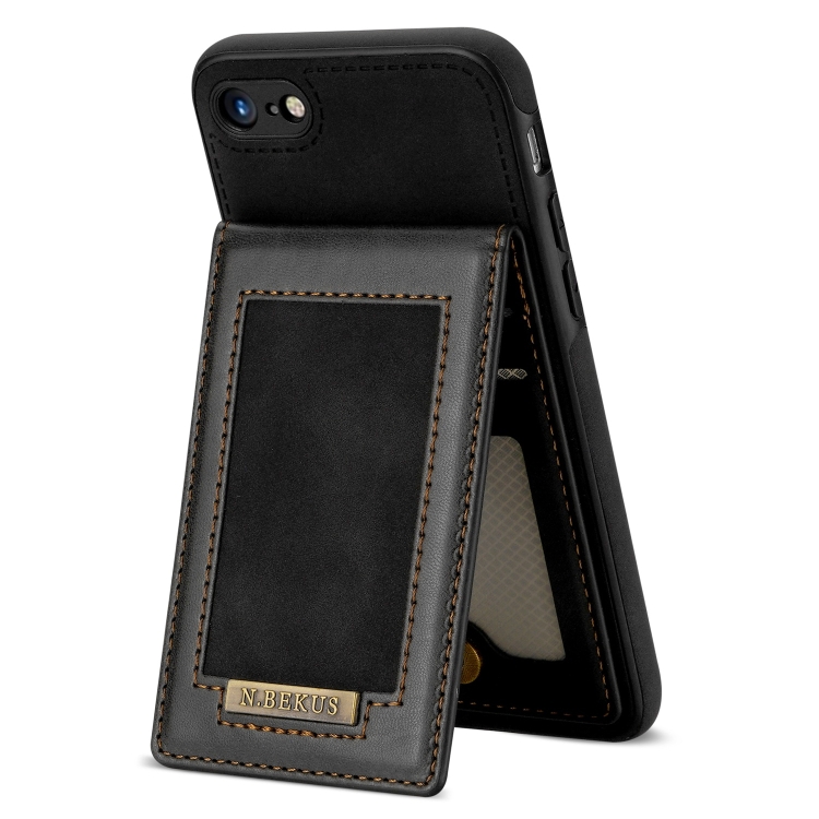 Estuche para Teléfono N.Bekus iPhone SE 2022 SE 2020 8 7 Rfid Ranura Tarjeta Tapa Vertical (Negro)
