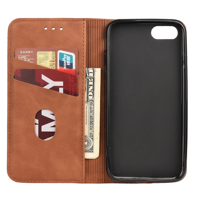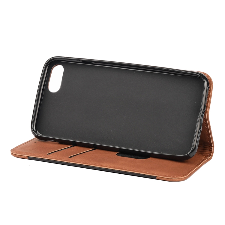 Funda para iPhone SE 2022 SE 2020 8 7 Skin Feel Splicing Leather Case (Marrón)