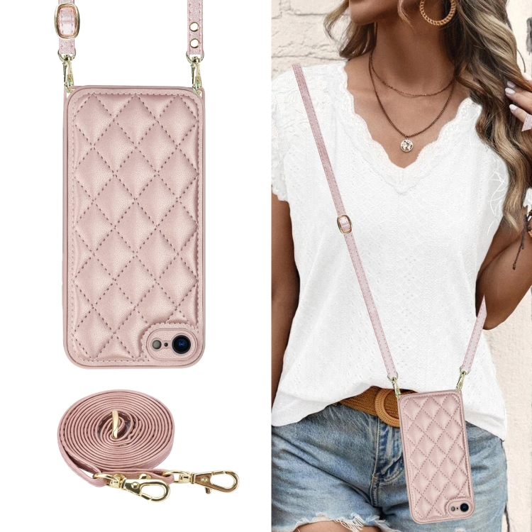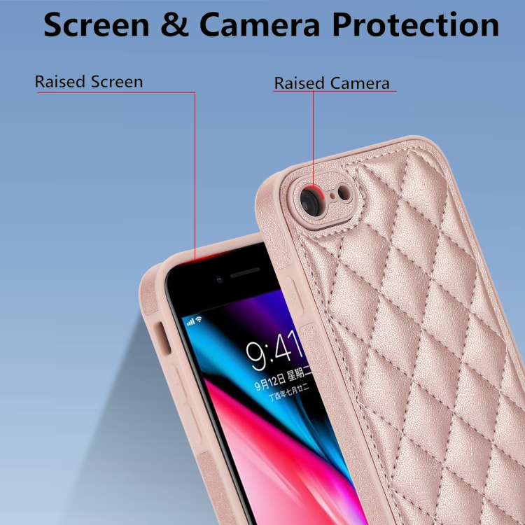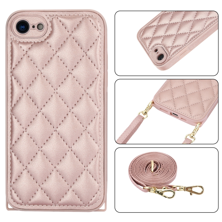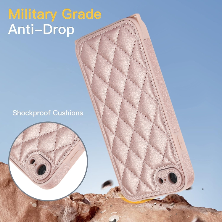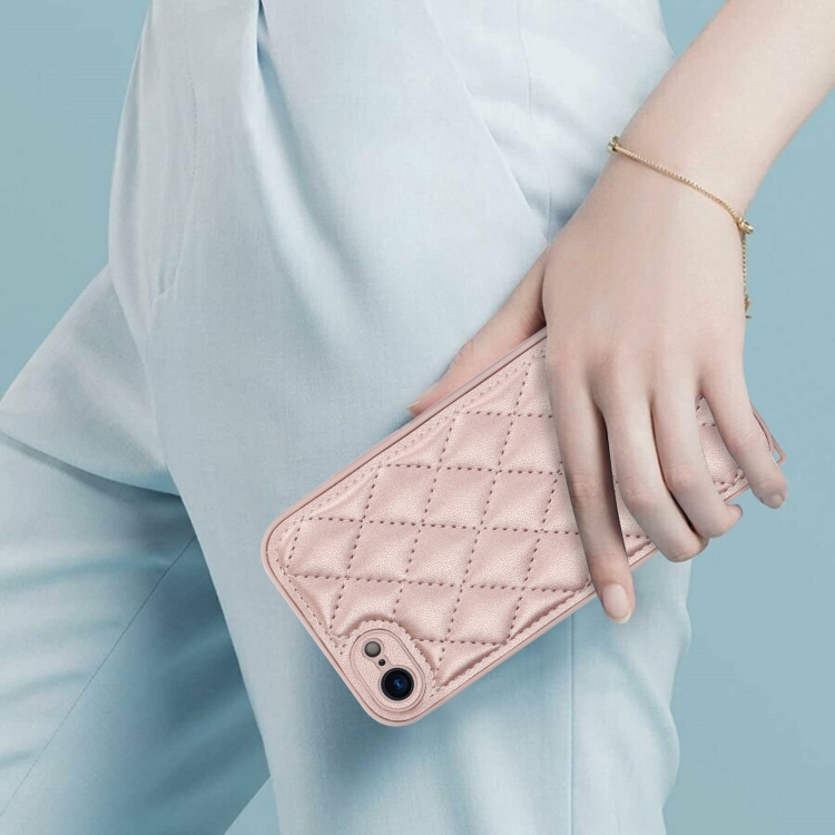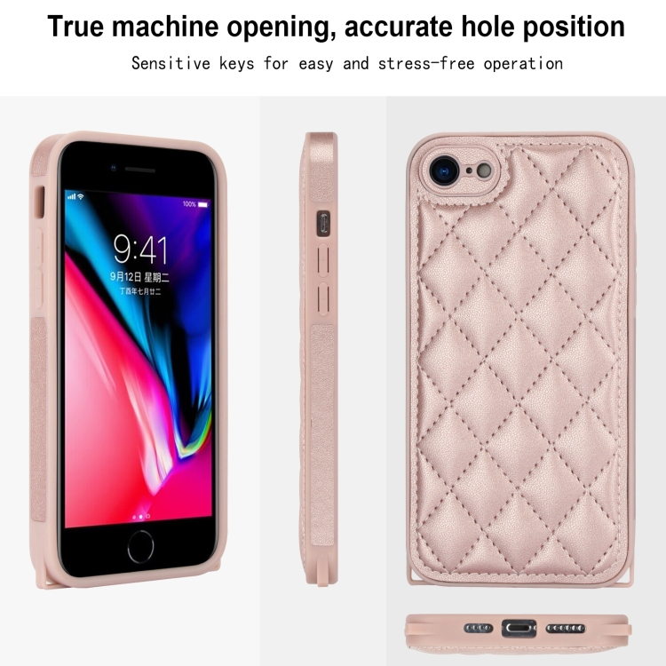 Estuche para Teléfono iPhone SE 2022/SE 2020 con Textura Rómbica y Cordón Doble (Oro Rosa)