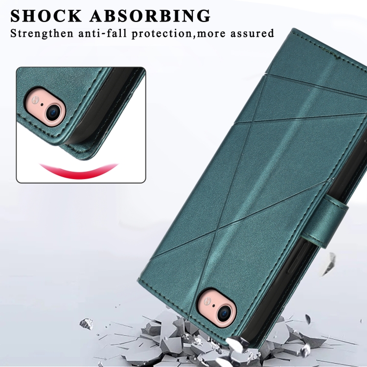 Funda para Teléfono iPhone SE 2022/SE 2020 Línea en Relieve Textura Cuero PU (Verde)