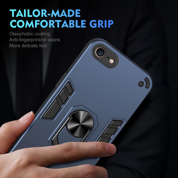 Funda para Teléfono iPhone SE 2022/SE 2020 con Soporte de Anillo de Metal a Prueba de Golpes (Azul)