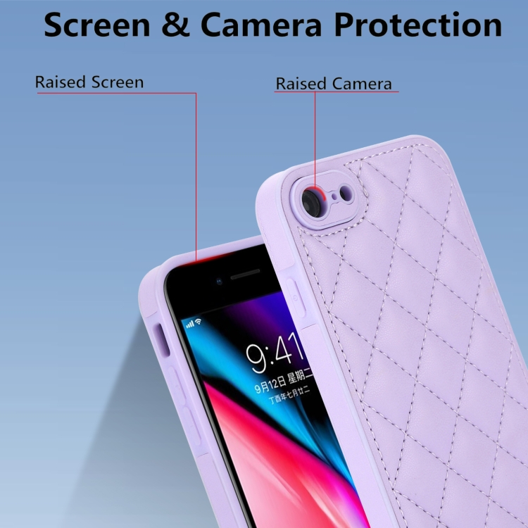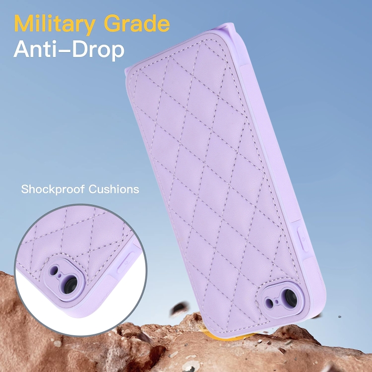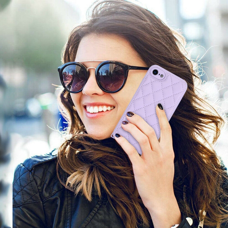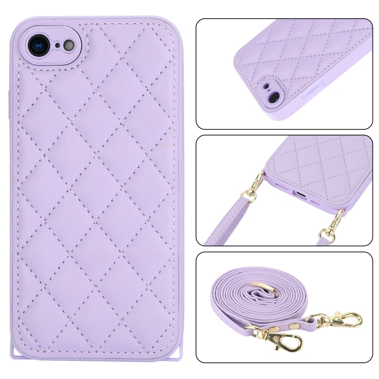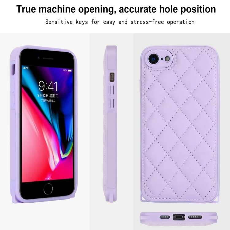 Funda para Teléfono iPhone SE 2022/SE 2020 Textura Rómbica Cordón Doble (Púrpura)