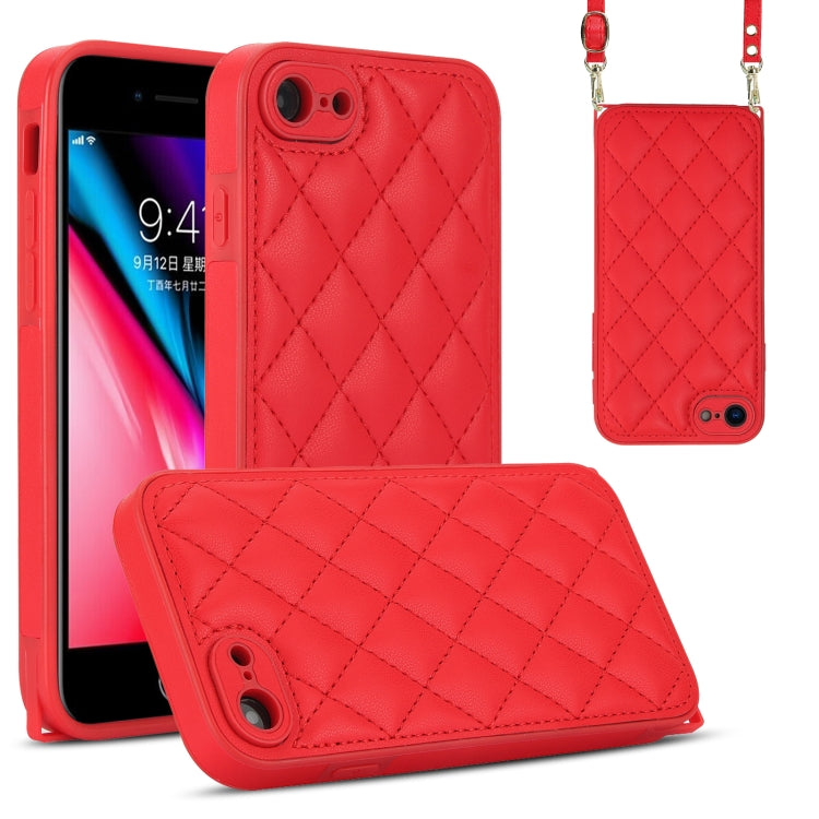 Funda para Teléfono iPhone Se 2022 y Se 2020 Textura Rómbica con Cordón Doble (Rojo)