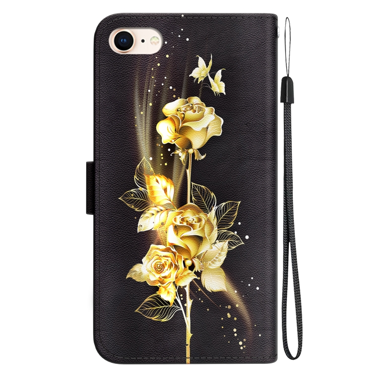 Funda para Teléfono iPhone SE 2022/SE 2020 Cuero Dibujo Cristal (Mariposa Dorada Rosa)