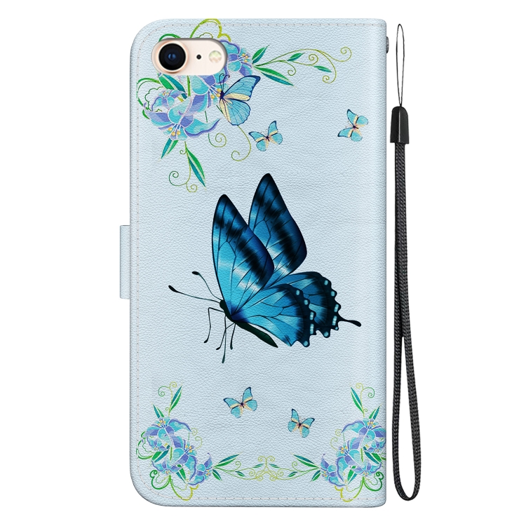 Funda para Teléfono iPhone SE 2022/SE 2020 Cuero Dibujo Coloreado Textura de Cristal (Pensamientos Azules)