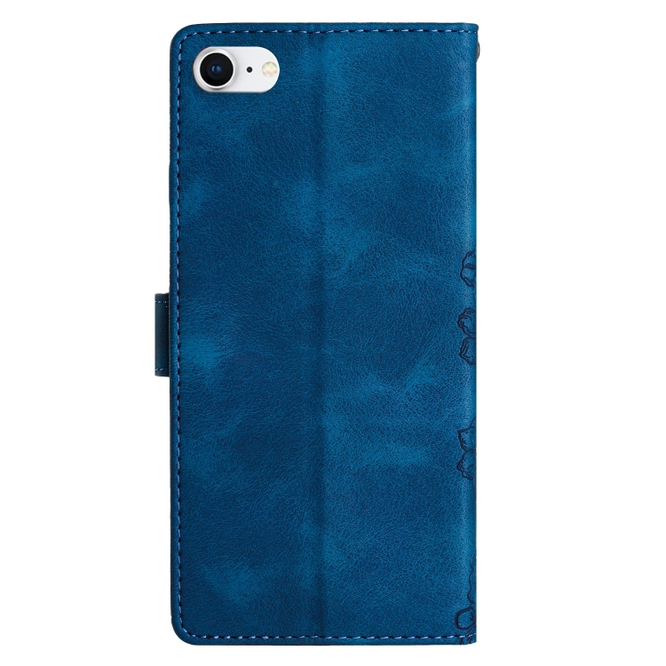 Funda para teléfono iPhone SE 2022/SE 2020 PU con Mariposa y Flor de Cerezo en Relieve (Azul)