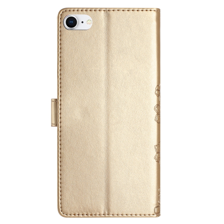 Funda para Teléfono iPhone SE 2022/SE 2020 PU Mariposa Flor de Cerezo En Relieve (Dorado)