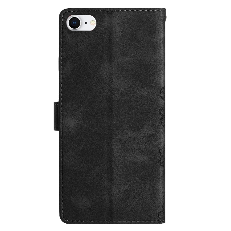 Funda para teléfono iPhone SE 2022/SE 2020 PU Mariposa y Flor de Cerezo en Relieve (Negro)