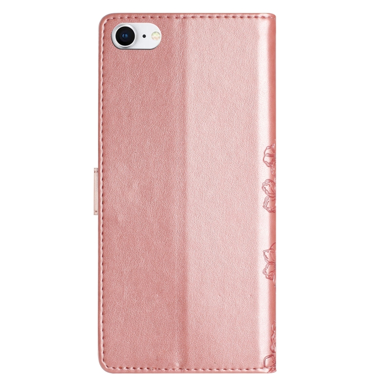 Funda para iPhone SE 2022/SE 2020 PU Mariposa y Flor de Cerezo En Relieve (Oro Rosa)