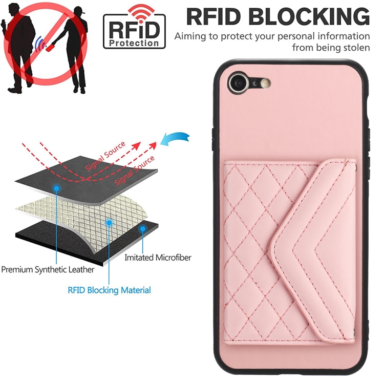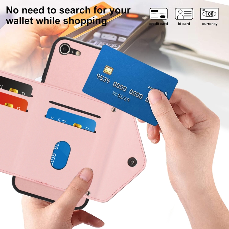 Funda para Teléfono iPhone SE 2022/SE 2020 con Bolsa para Tarjetas y Protección RFID (Oro Rosa)