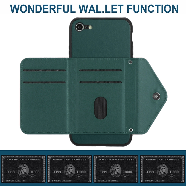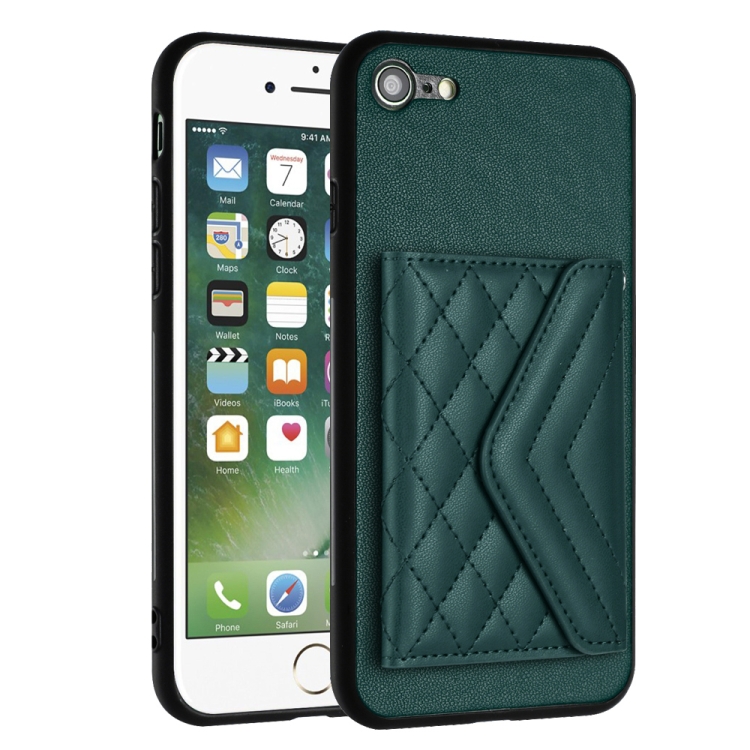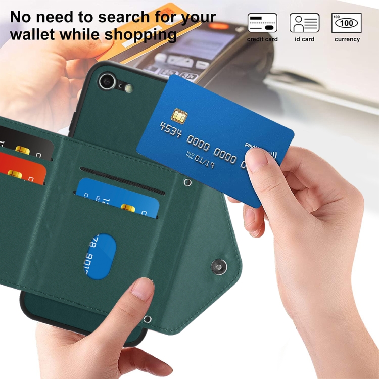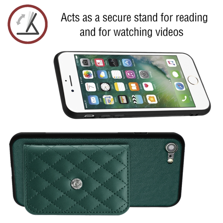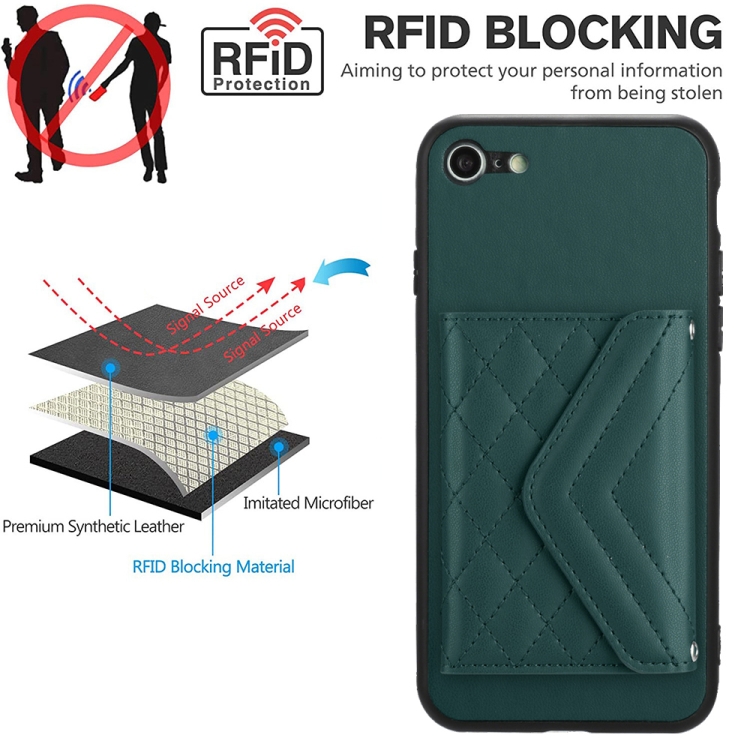Funda para Teléfono iPhone SE 2022/SE 2020 con Bolsa para Tarjetas Rfid Textura Rómbica Cordón Largo (Verde)