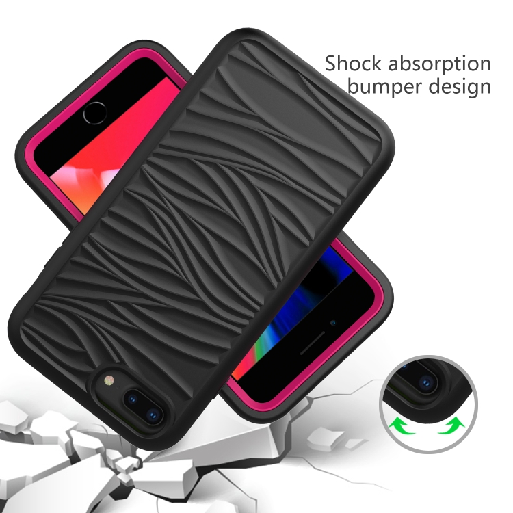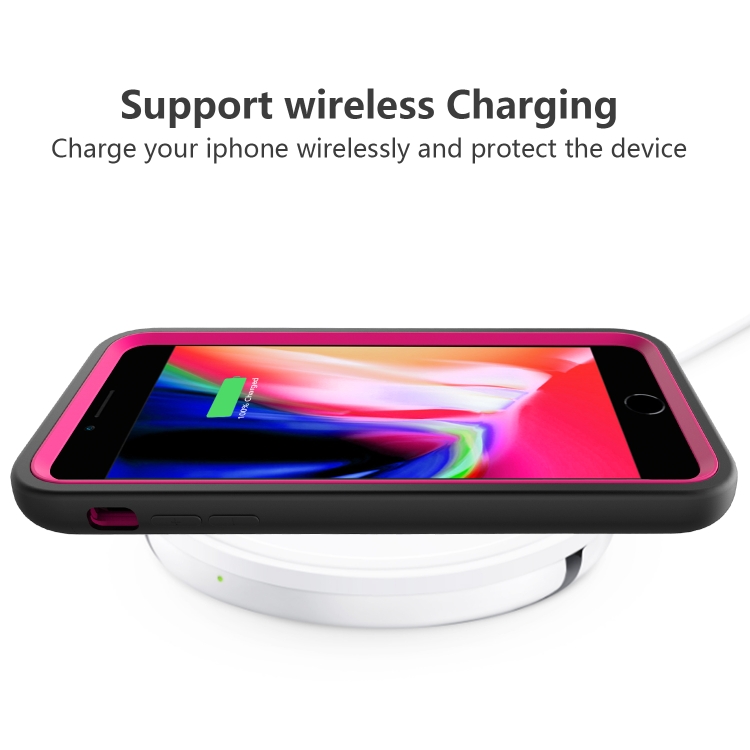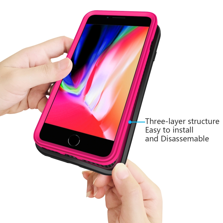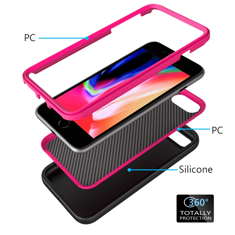 Funda Protectora 3 En 1 para iPhone SE 2022 SE 2020 Silicona PC a Prueba de Golpes (Negro Rosa Fuerte)