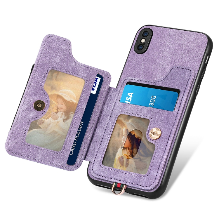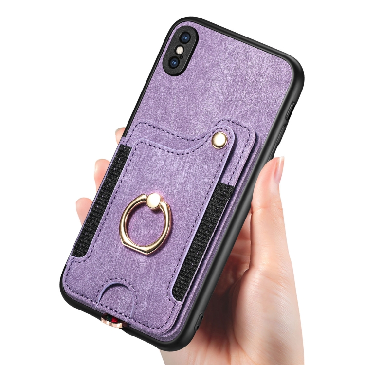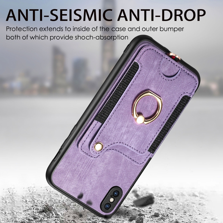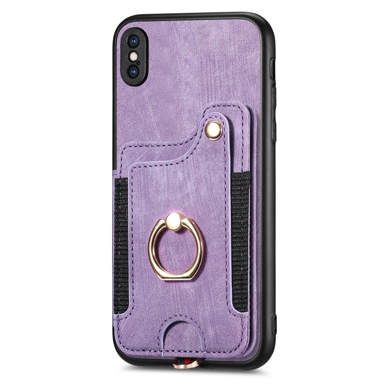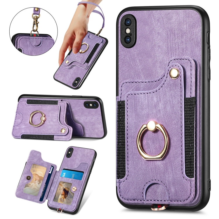 Funda para iPhone SE 2022 SE 2020 Retro Skin-Feel Ring Multi-Card Wallet (Púrpura)