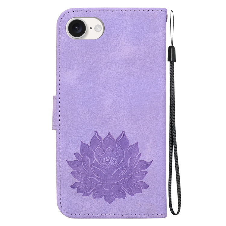 Funda de Piel con Relieve de Loto para iPhone 16E (Morado)