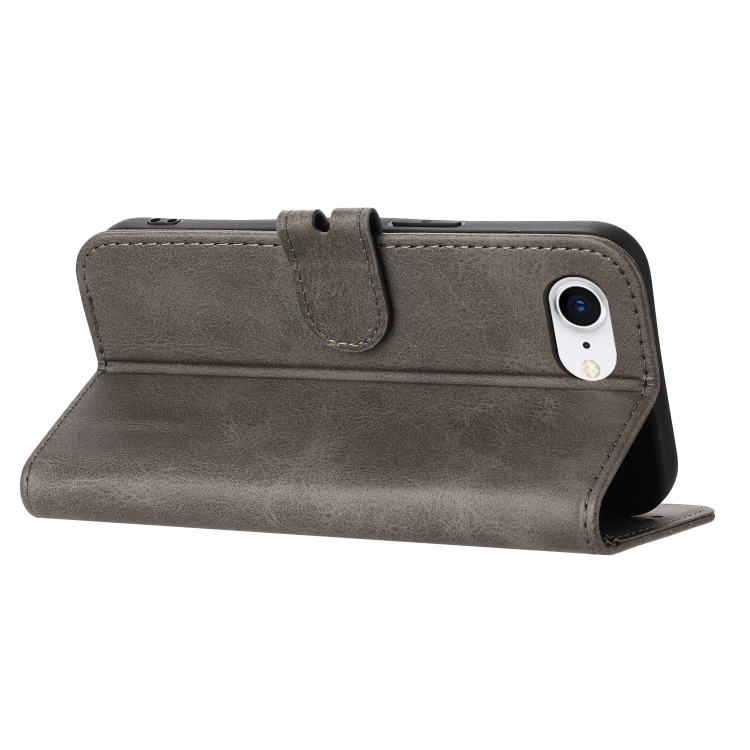 Funda de Cuero con Tapa para iPhone 16E Diseño de Gato Feliz En Relieve (Gris)
