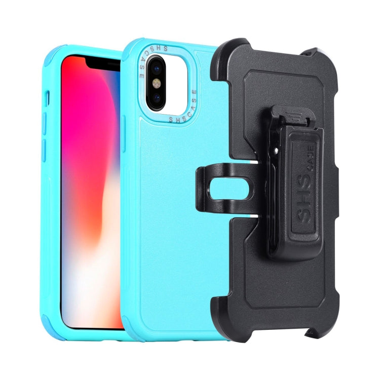 Funda para Teléfono iPhone X / Xs 3 En 1 PC y TPU con Funda Deslizante (Azul + Azul Cielo)