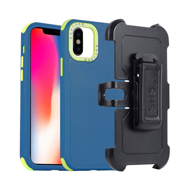 Funda para Teléfono iPhone X Xs 3 En 1 PC y TPU con Funda Deslizante (Azul + Verde)