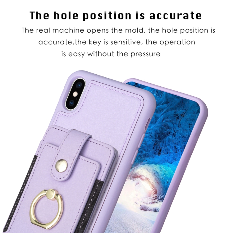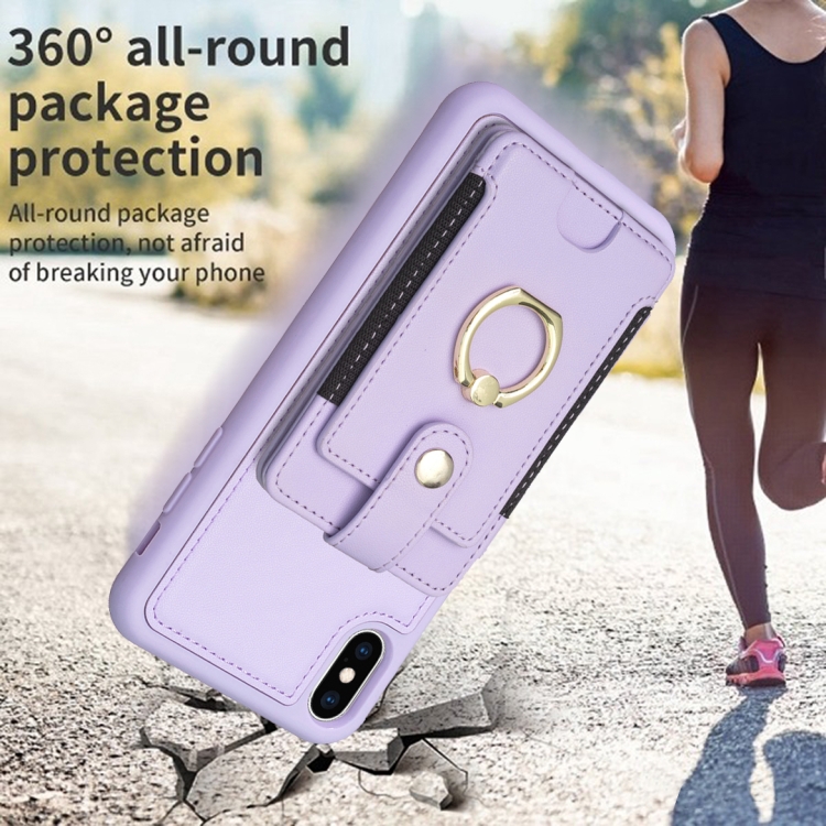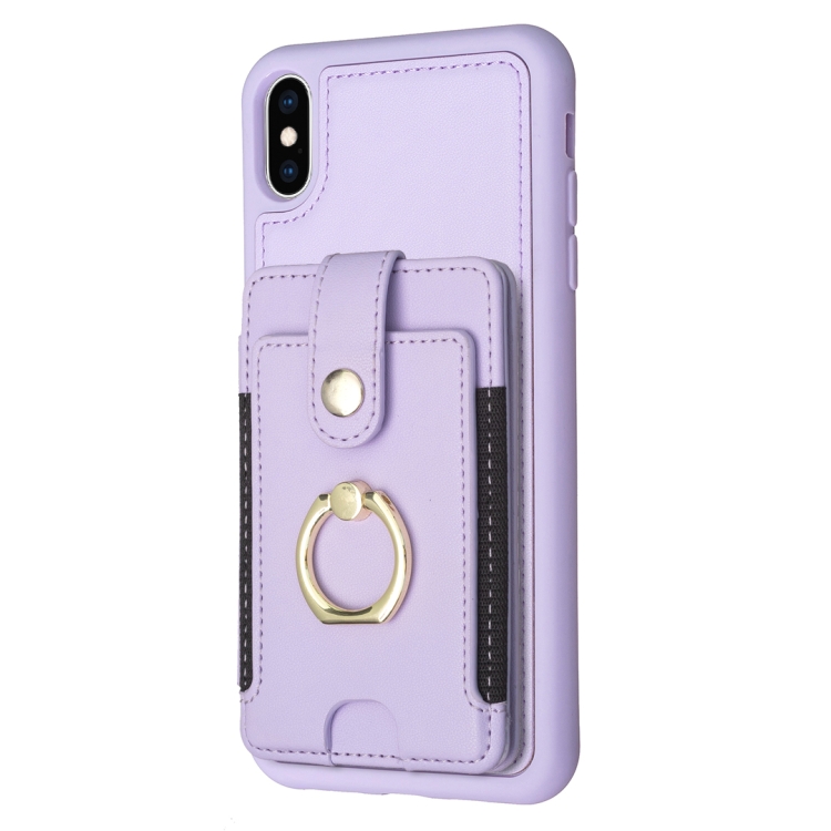 Funda para Teléfono Bf27 para iPhone X / Xs con Soporte para Tarjeta y Anillo de Metal (Púrpura)