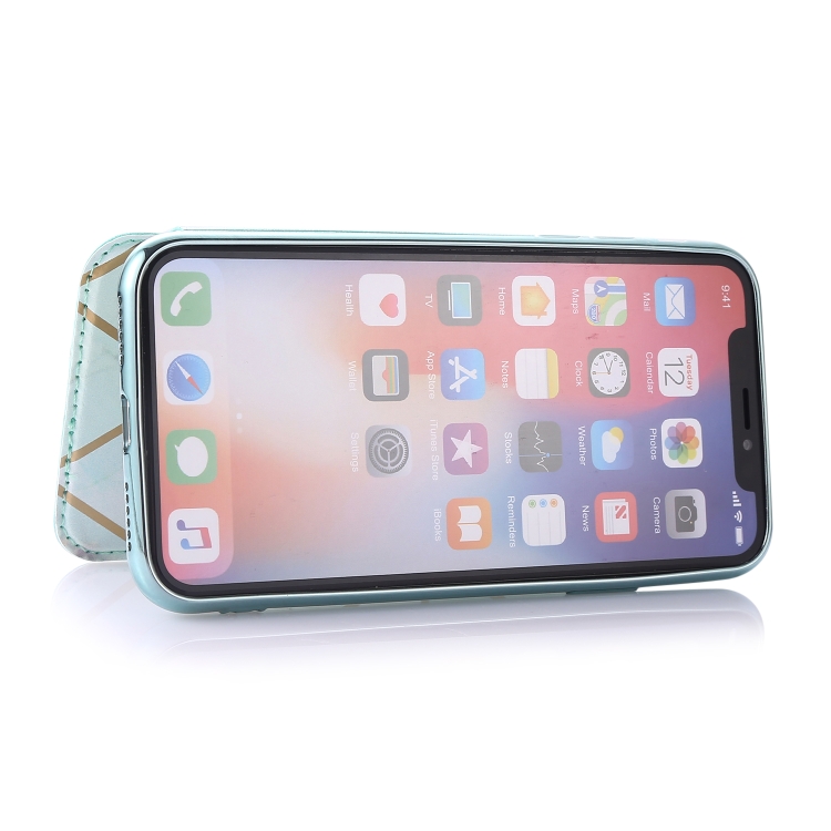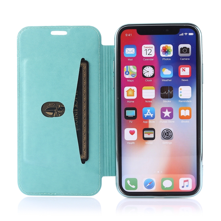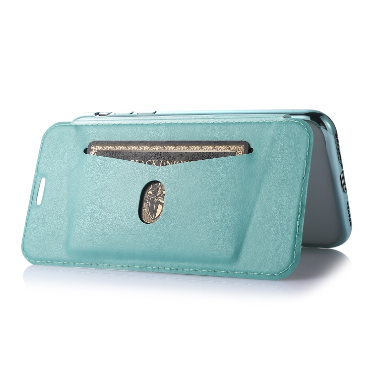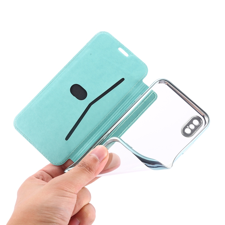 Estuche de Cuero para iPhone X Xs con Tapa Horizontal Soporte y Ranura para Tarjeta (Verde)