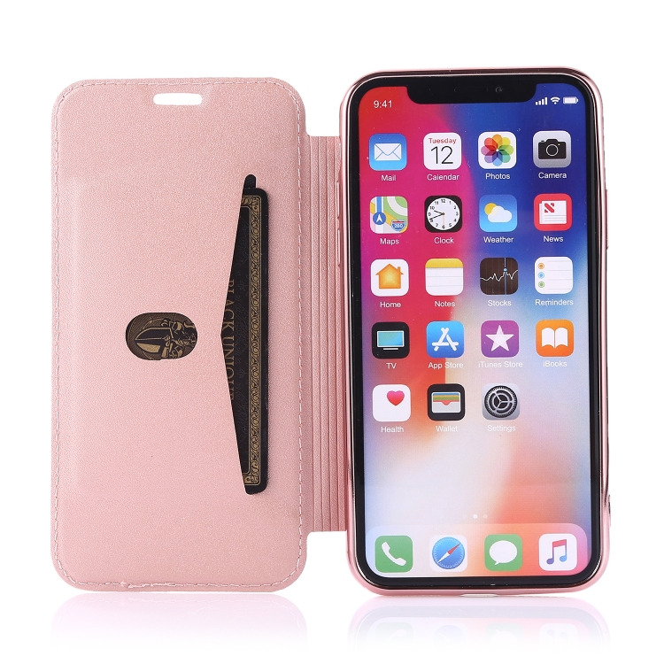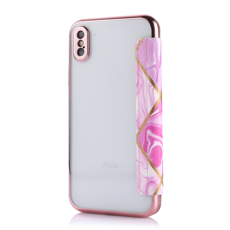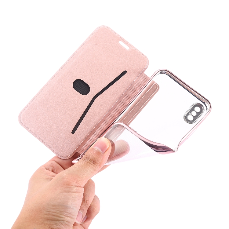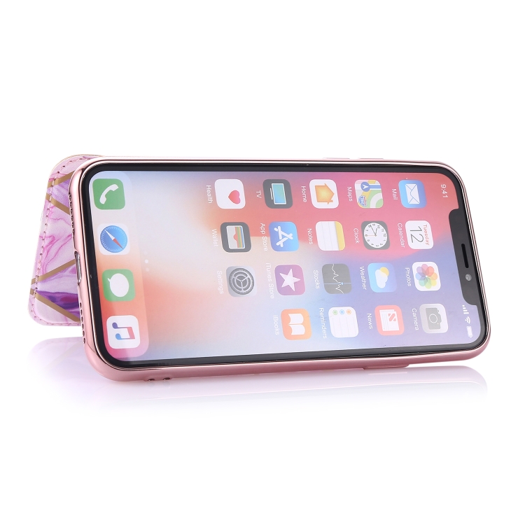 Funda de Cuero para iPhone X Xs Bronceado Pu y TPU con Tapa Horizontal Soporte y Ranura para Tarjeta (Rosa Púrpura)