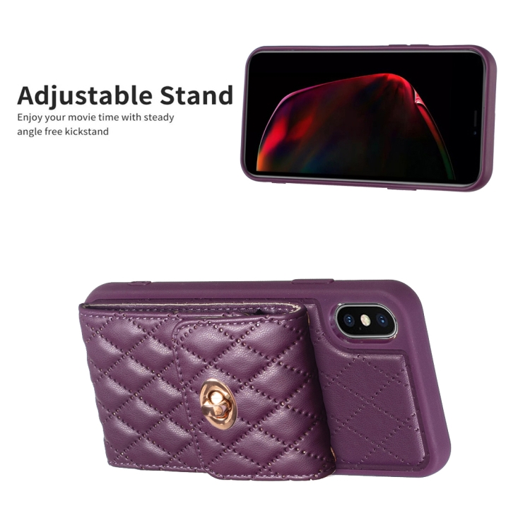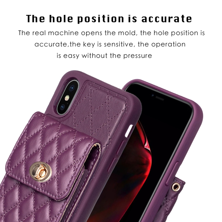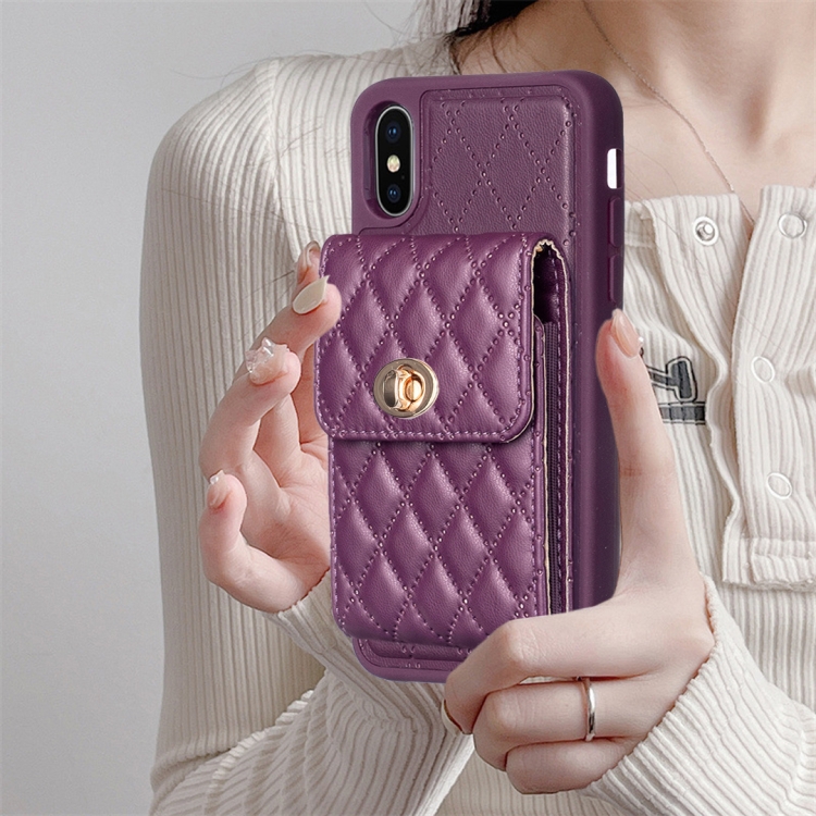 Caja de Teléfono iPhone X Xs Cuero Rómbica Billetera Hebilla Metal Vertical (Púrpura Oscuro)
