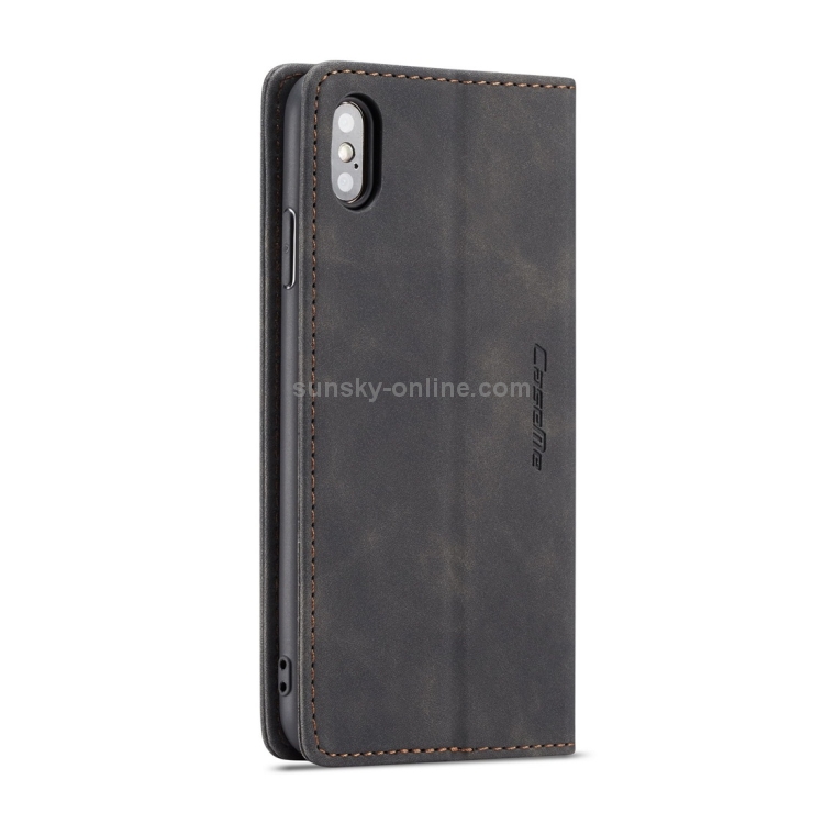 Funda para iPhone X Xs Caseme-013 Cuero Tapa Horizontal Esmerilada Multifuncional Ranura Tarjeta Soporte Billetera (Negro)