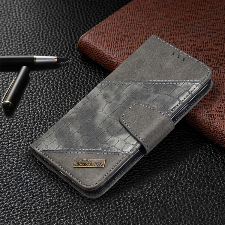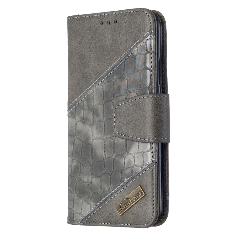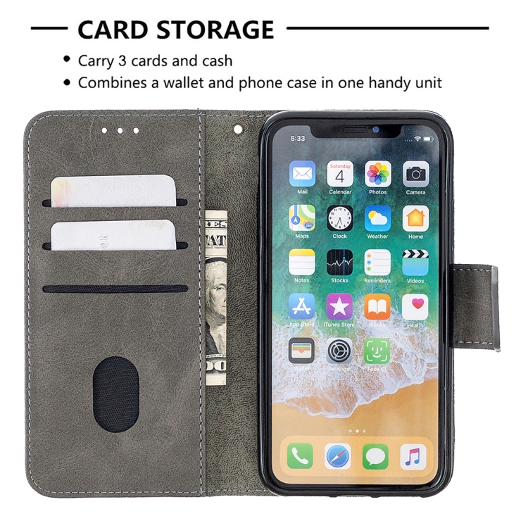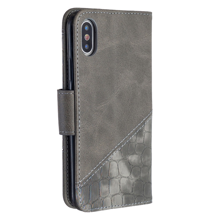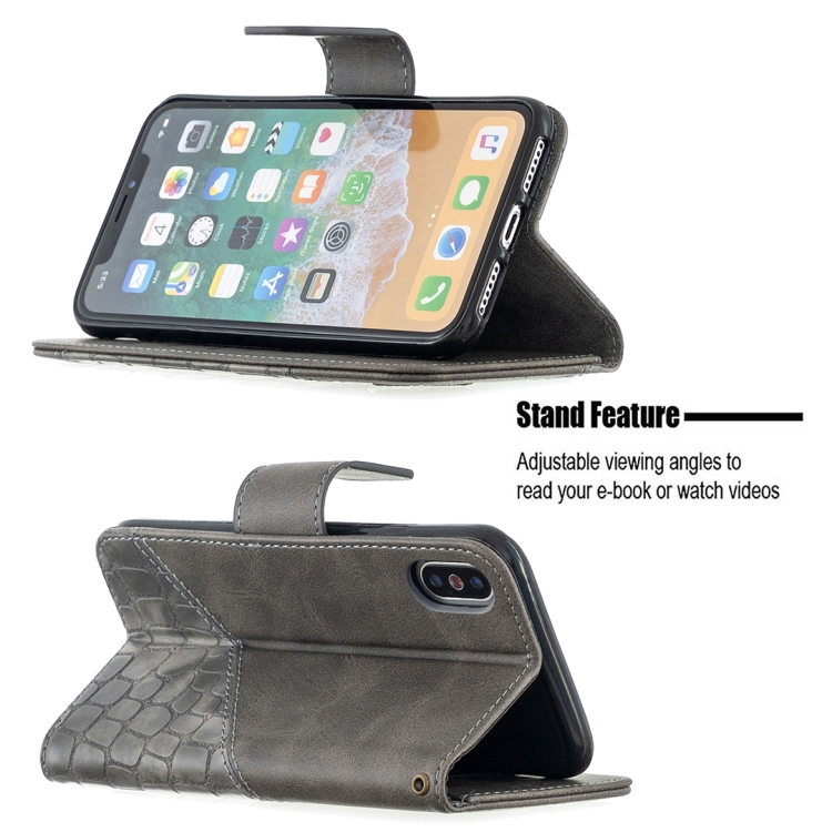Funda de Cuero de PU para iPhone X / Xs Textura de Cocodrilo con Tapa Horizontal Billetera Soporte y Ranuras para Tarjetas (Gris)