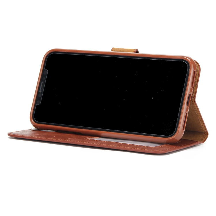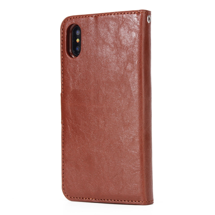 Funda para iPhone X Xs Crazy Horse Cubierta Trasera Magnética Cuero con Tapa Horizontal Soporte Ranuras Tarjetas Marco Fotos Billetera (Marrón)
