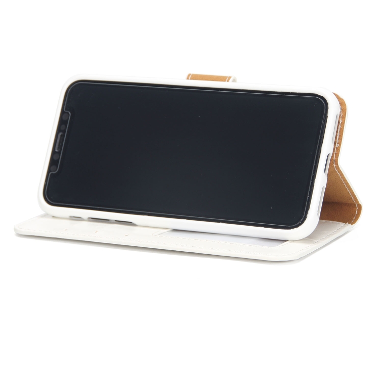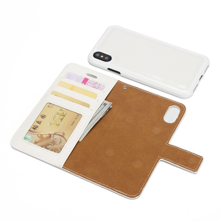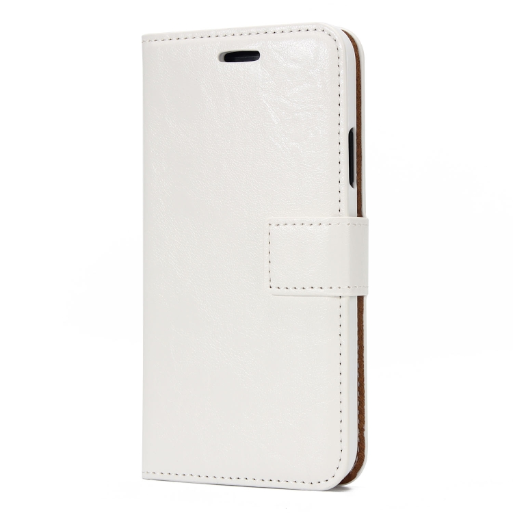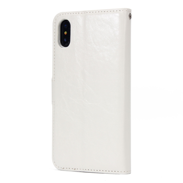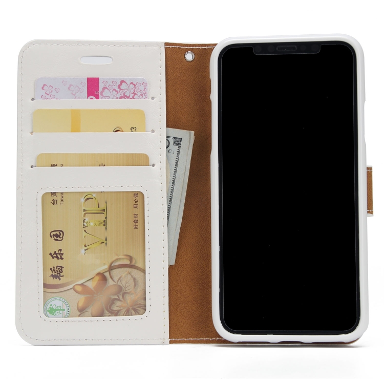 Funda para iPhone X Xs Crazy Horse Textura Cuero Magnética Tapa Trasera Flip con Soporte Ranuras Tarjetas Marco Fotos Billetera (Blanco)