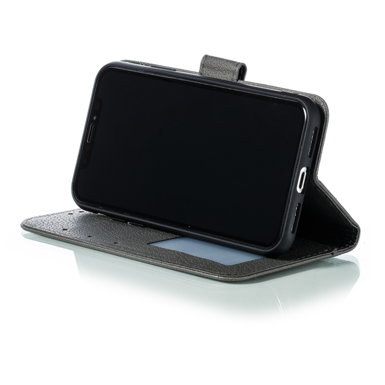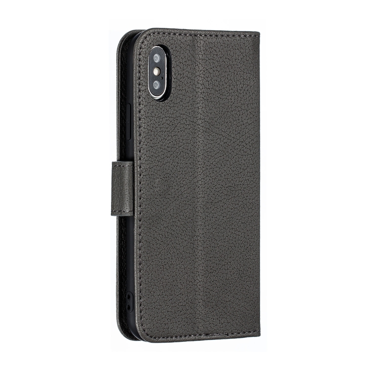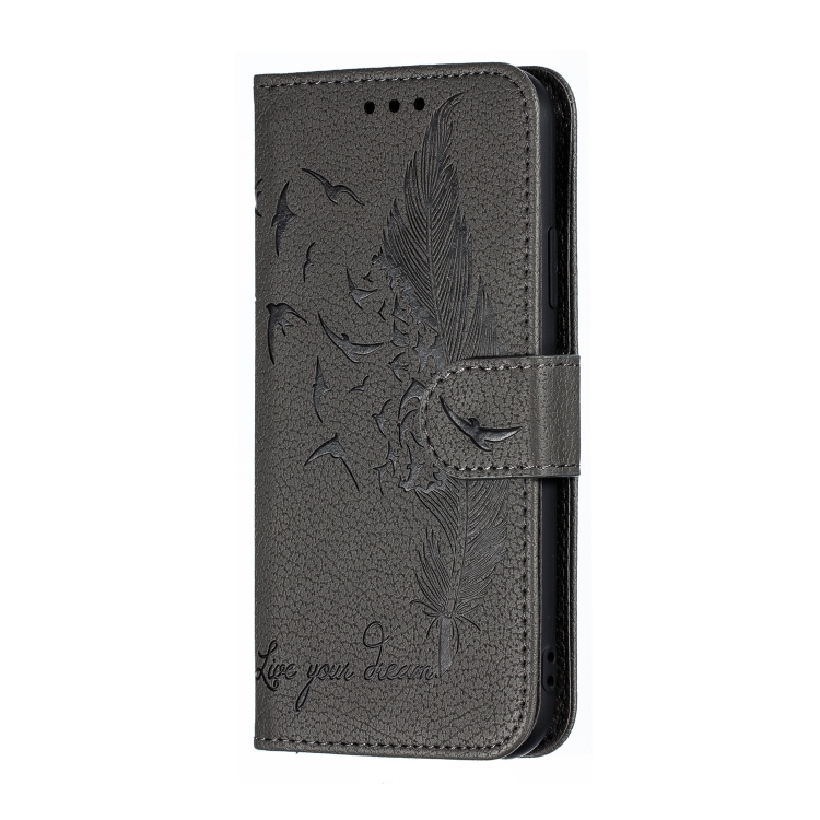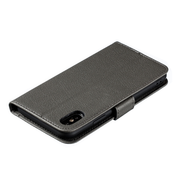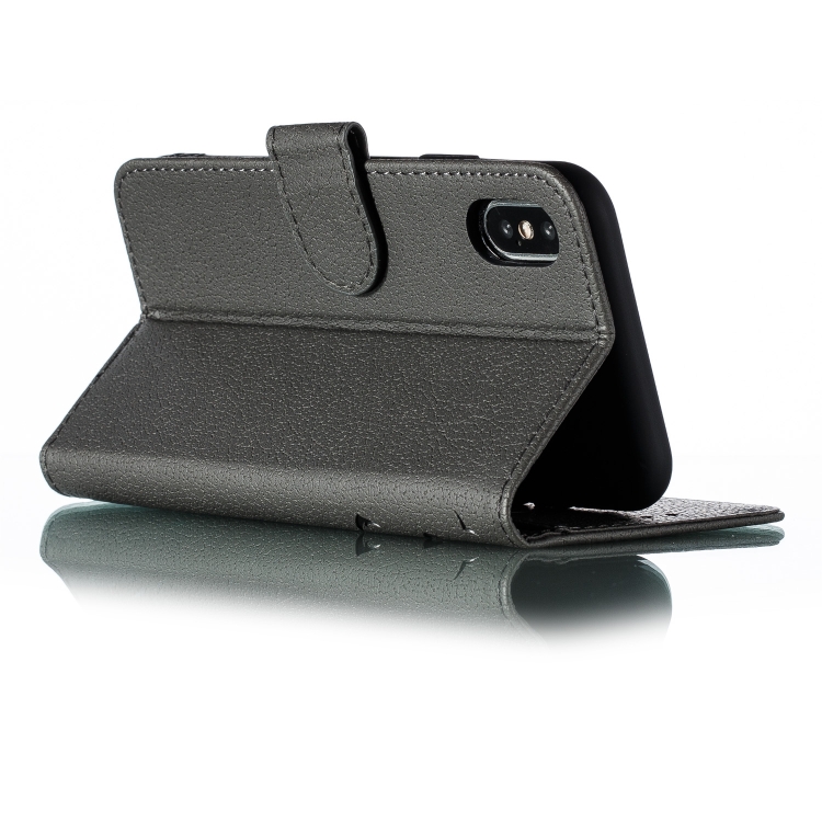 Funda de cuero para iPhone X Xs Feather Pattern con tapa horizontal billetera soporte ranuras para tarjetas (Gris)