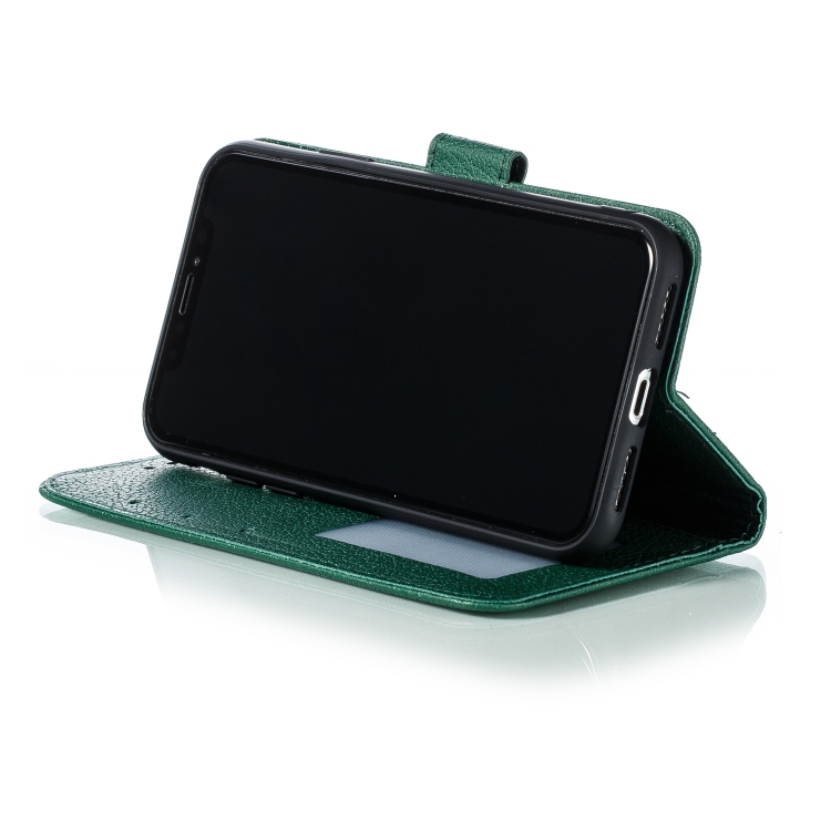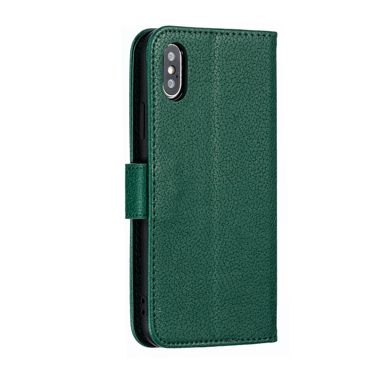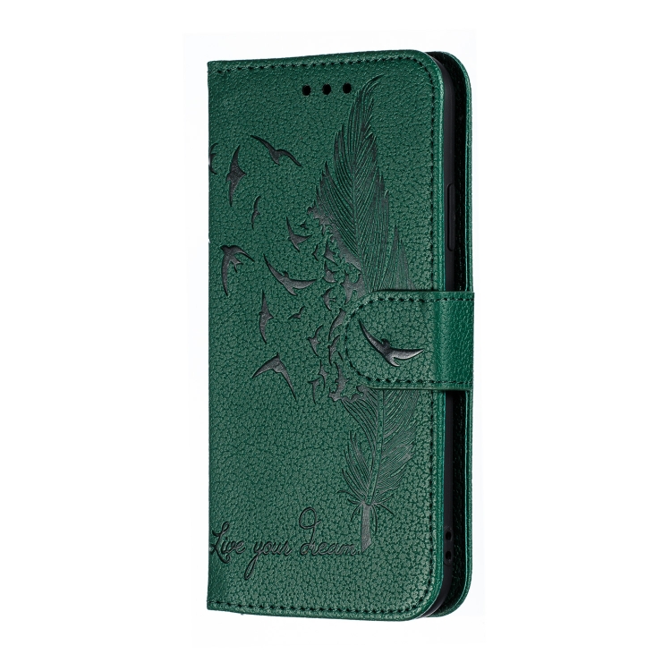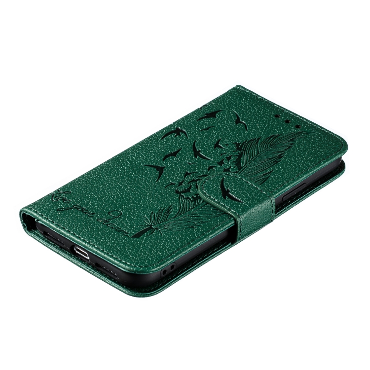 Funda de Cuero iPhone X Xs Feather Pattern con Tapa Horizontal Billetera Soporte Ranuras Verde