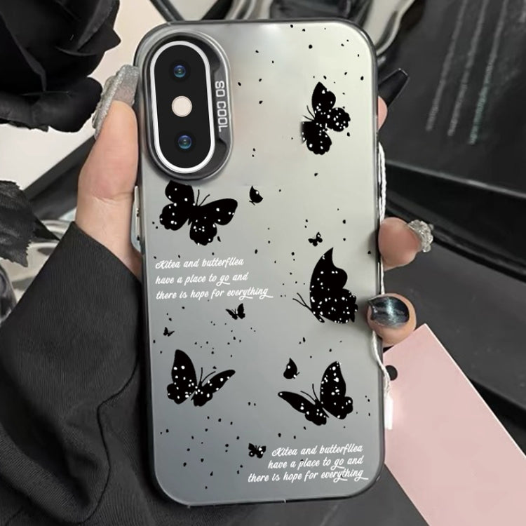 Funda híbrida para iPhone X Xs de TPU con pintura plateada y mariposa de tinta negra