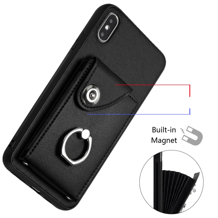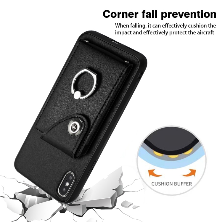 Funda para Teléfono iPhone X / Xs con Soporte para Anillo y Bolsa para Tarjeta (Negro)