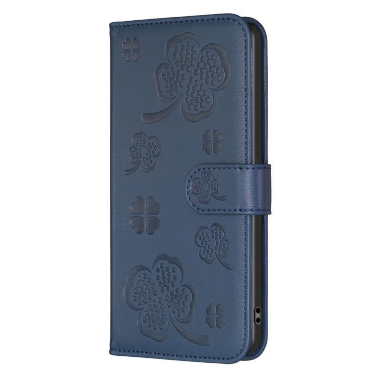 Funda para Teléfono iPhone X Xs Cuero Relieve Cuatro Hojas (Azul)