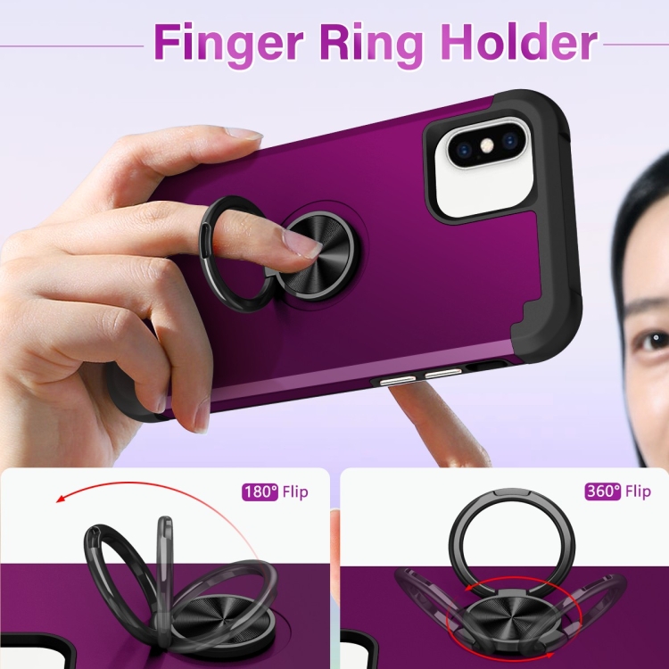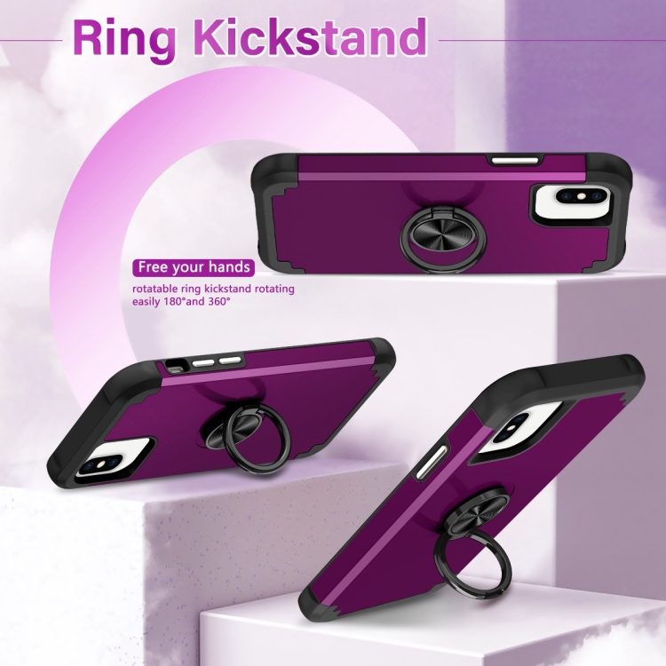 Funda Magnética para iPhone X Xs L2 con Soporte de Anillo Giratorio (Púrpura Oscuro)