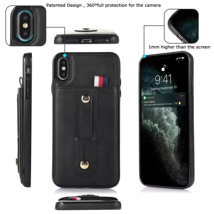 Funda para iPhone X / Xs Muñequera Kickstand Wallet de Cuero para Teléfono (Negro)