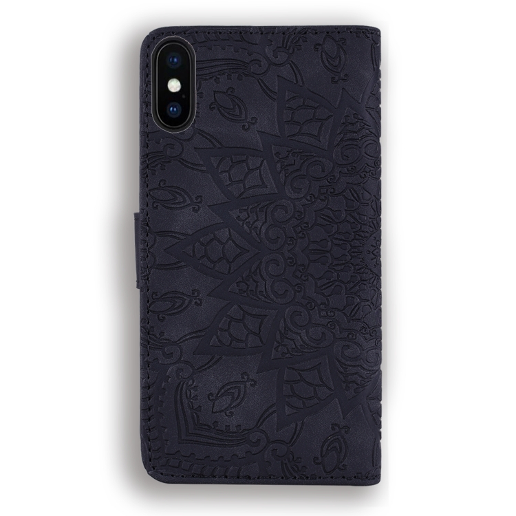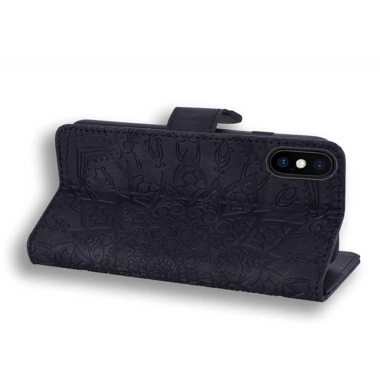 Estuche de Cuero iPhone X / Xs Patrón Becerro Plegable Doble con Billetera y Soporte (Negro)