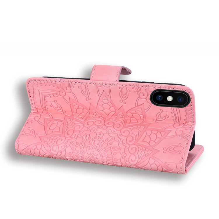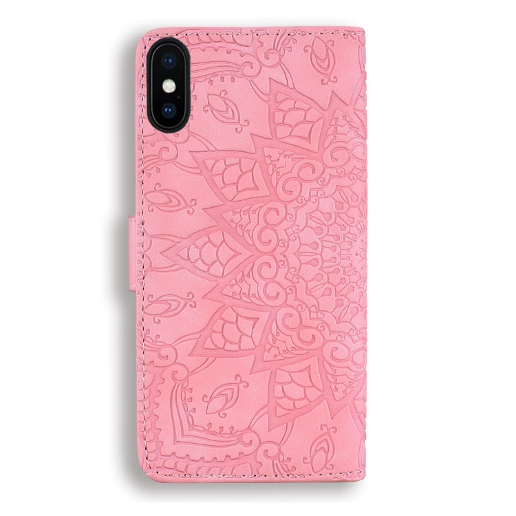 Estuche de Cuero para iPhone X Xs Patrón de Becerro Diseño Plegable Doble con Billetera Soporte y Ranuras para Tarjetas (Rosa)