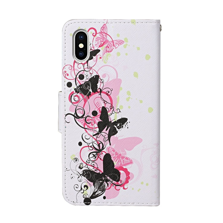 Estuche de Cuero para iPhone X / Xs con Tapa Horizontal Soporte Ranuras Tarjetas Billetera (Cuatro Mariposas)