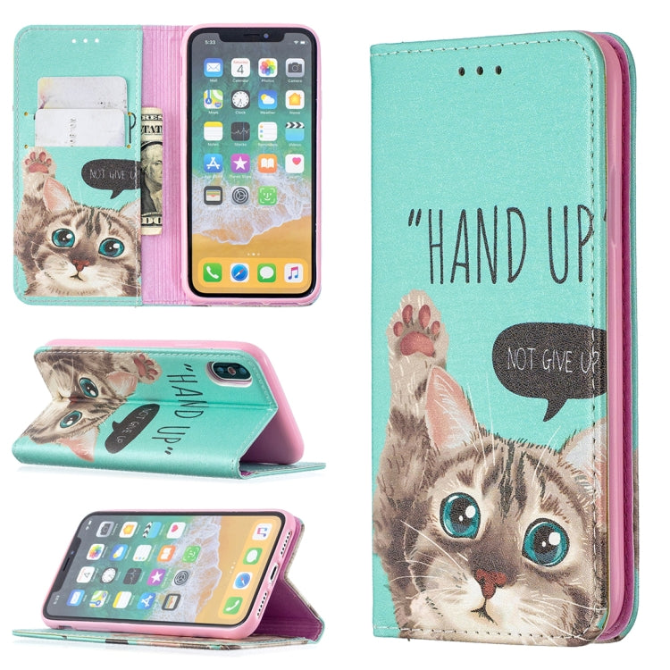 Funda para iPhone X / Xs Cuero PU Patrón Dibujo Coloreado Tapa Magnética Soporte Ranuras Tarjetas Billetera (Gato)