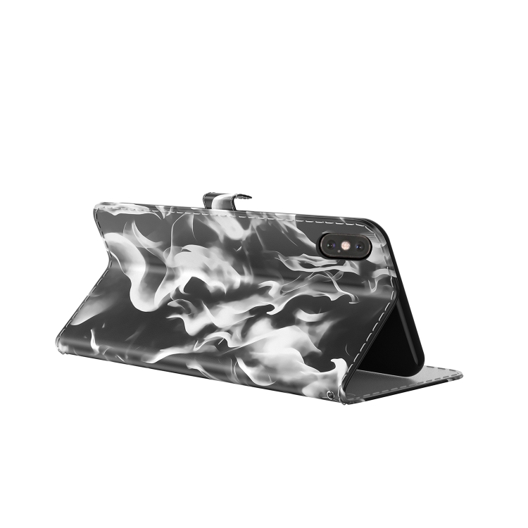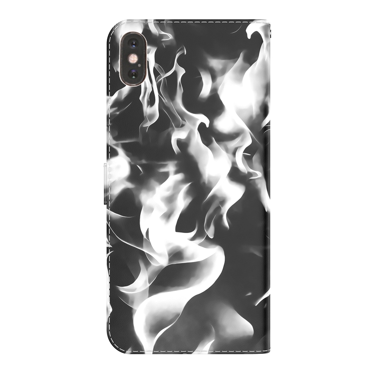 Estuche de Cuero para iPhone X Xs Patrón Niebla En la Nube Tapa Horizontal Soporte Ranura Tarjeta Billetera (Negro)