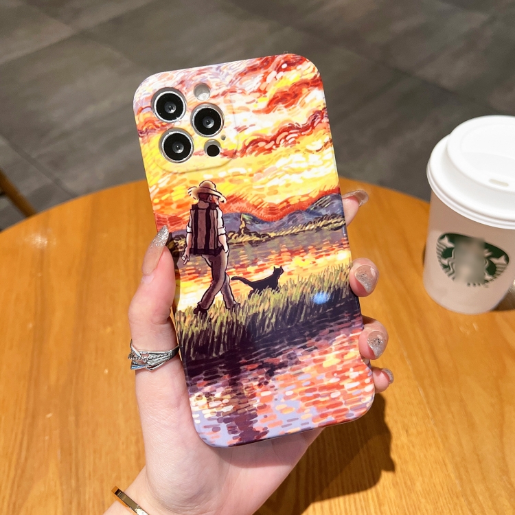 Estuche para Teléfono iPhone X Xs Patrón de Pintura al Óleo PC Brillante (Puesta de Sol)