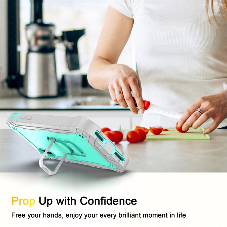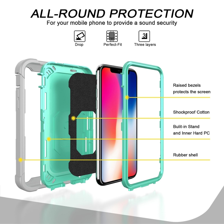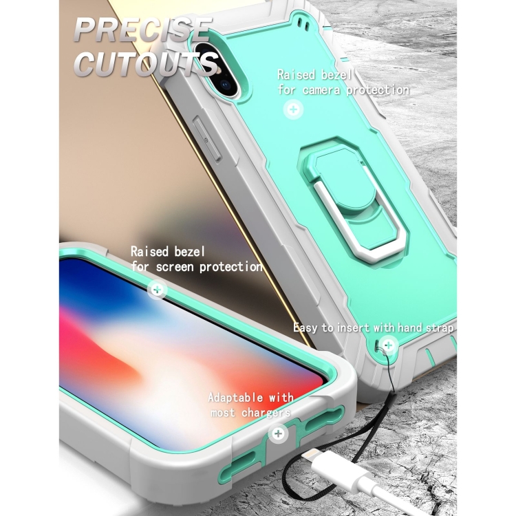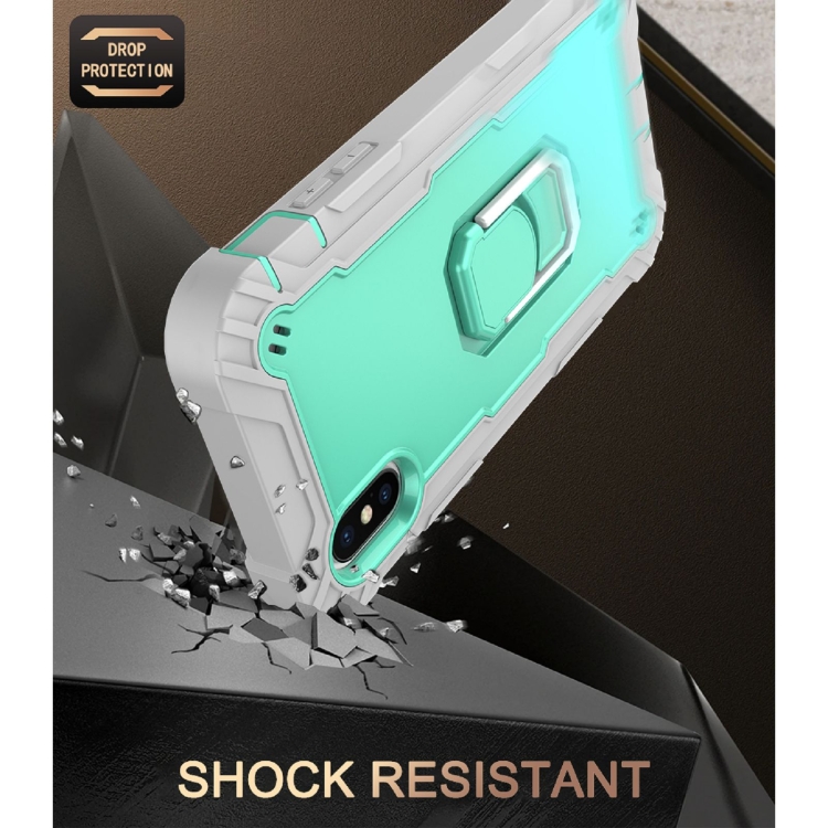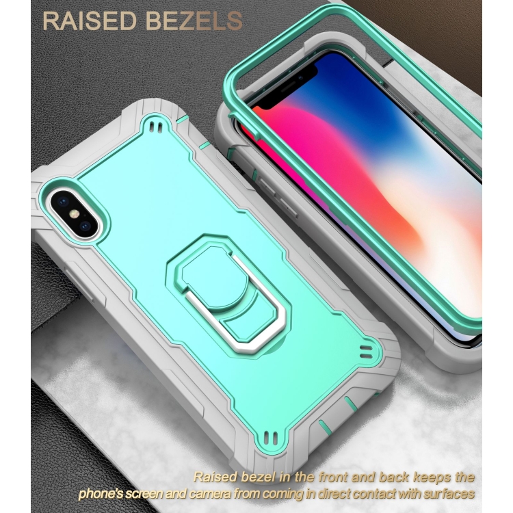 Funda para iPhone X Xs PC + Goma 3 Capas a Prueba de Golpes con Soporte Giratorio (Gris Blanco + Verde Menta)