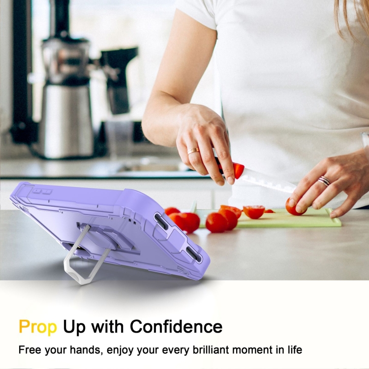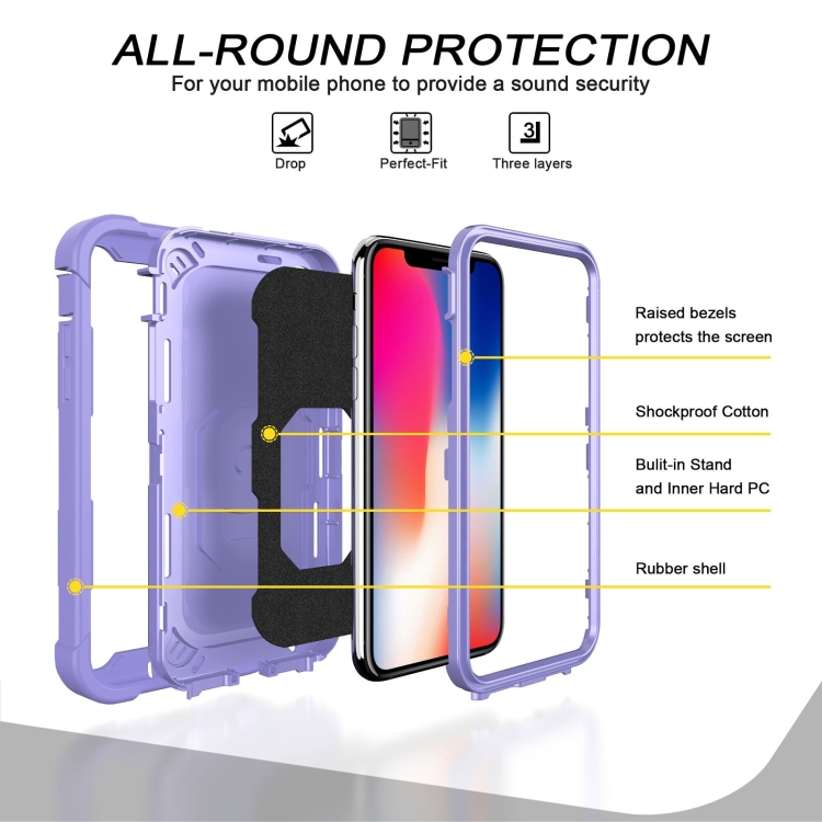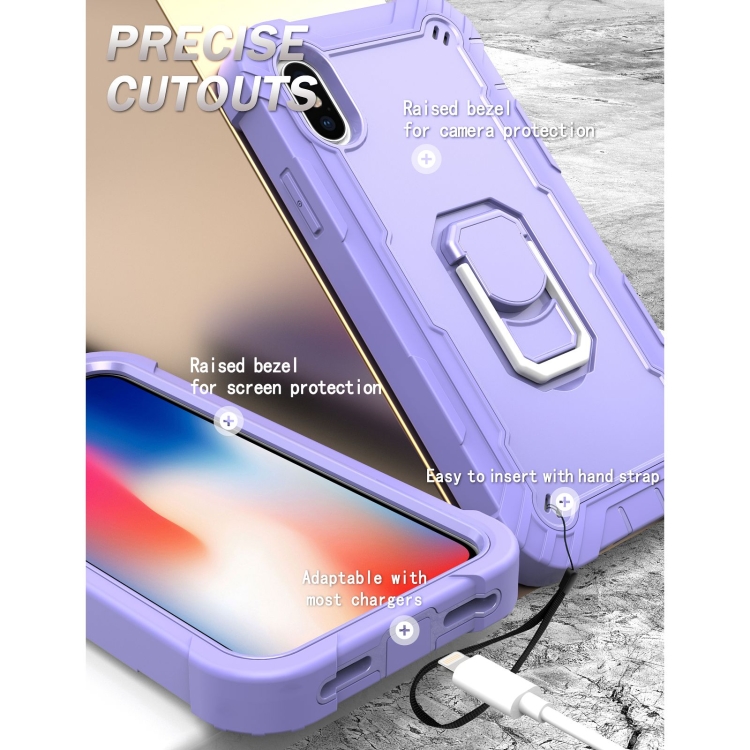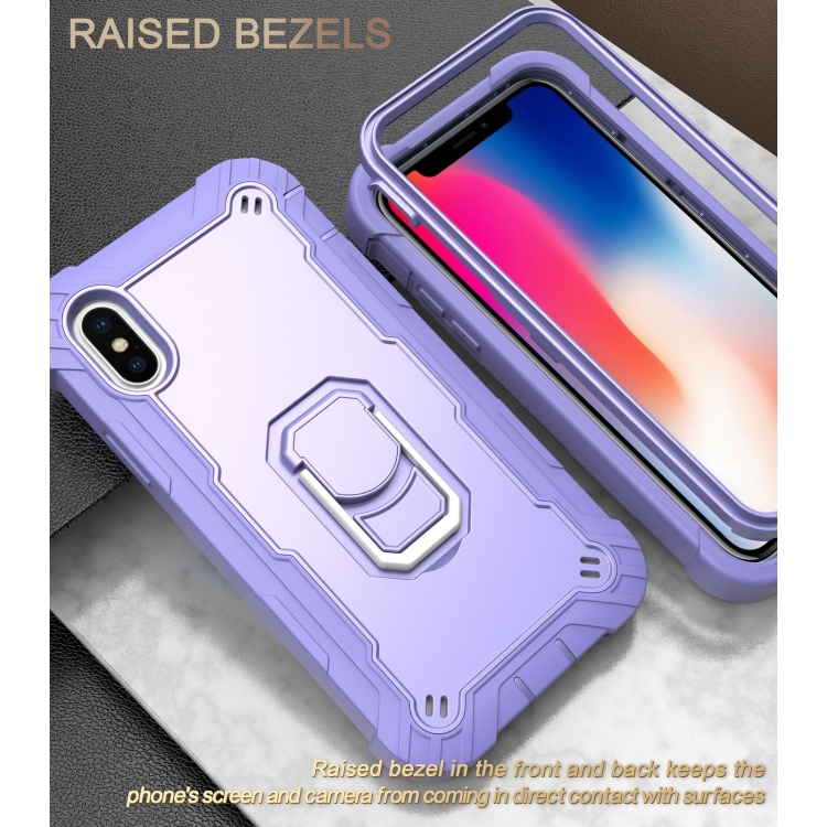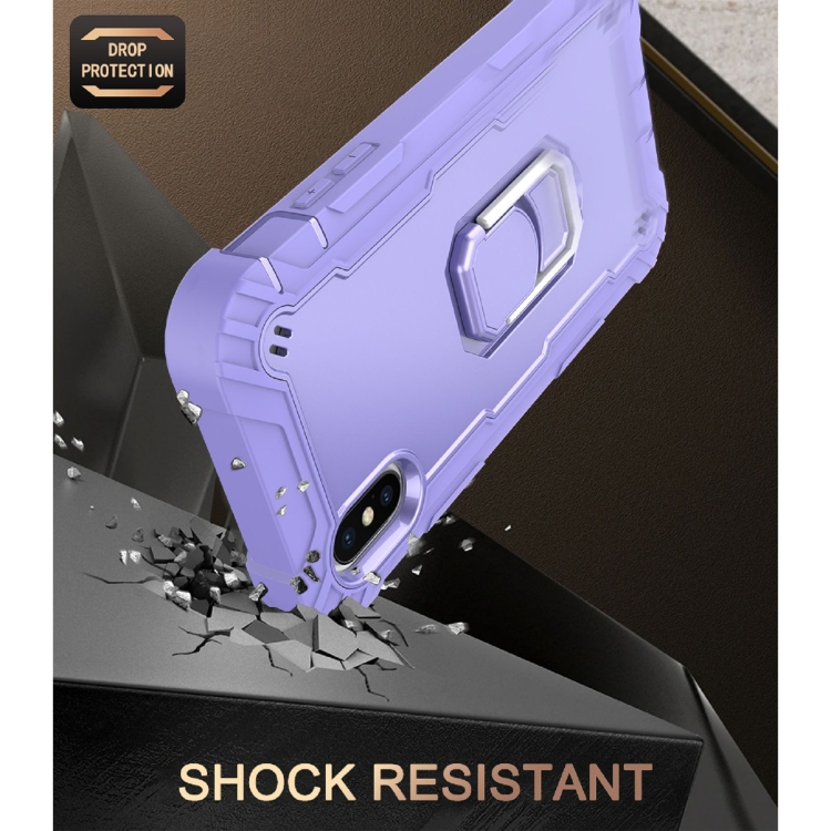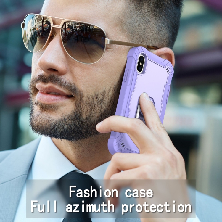 Funda Protectora para iPhone X Xs PC 3 Capas Prueba de Golpes Soporte Giratorio (Púrpura)