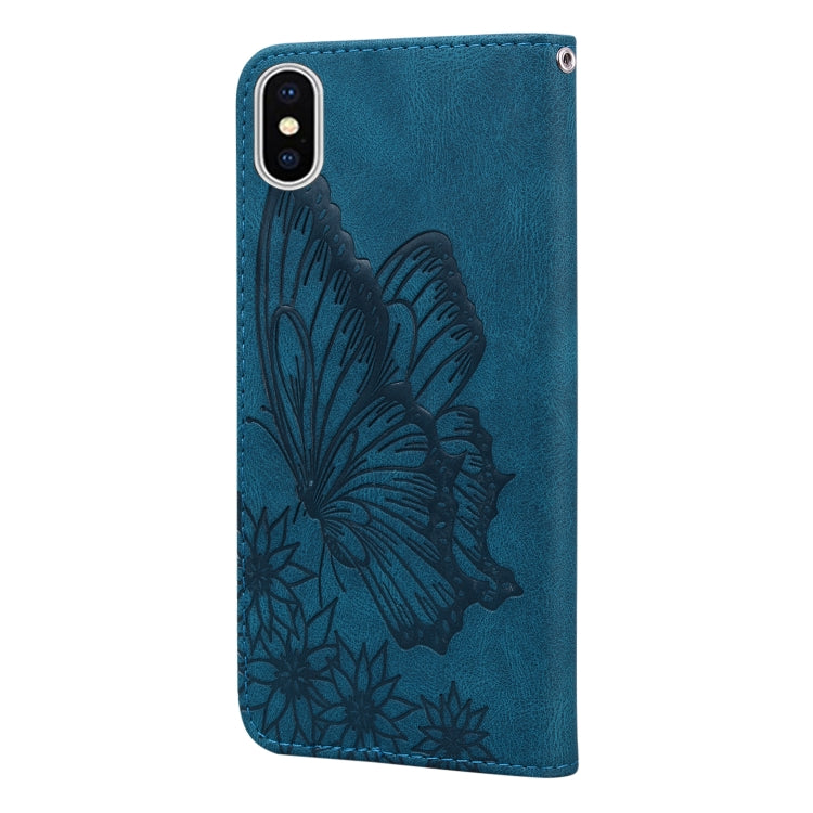 For iPhone X/XS Retro Skin Feel Butterflies Embossing Horizontal Flip Leather Case with Holder & Card Slots & Wallet(Blue)
