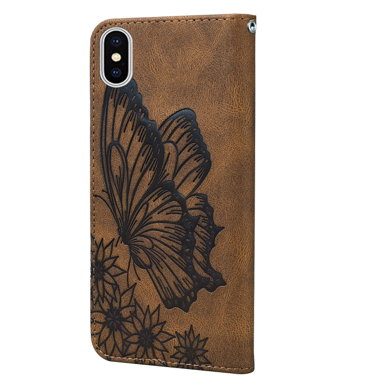 Funda de Cuero iPhone X Xs Retro Skin Feel Butterflies con Tapa Horizontal Soporte y Ranuras para Tarjetas Billetera (Marrón)